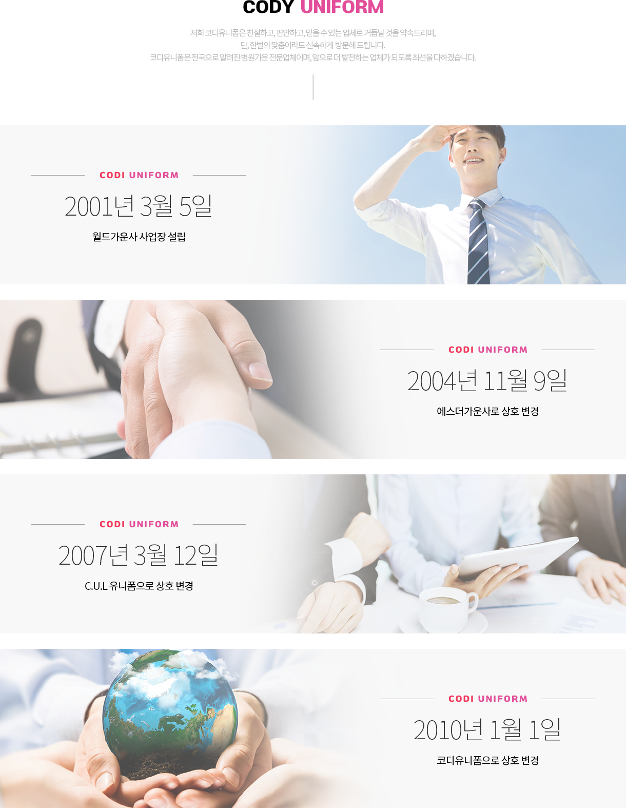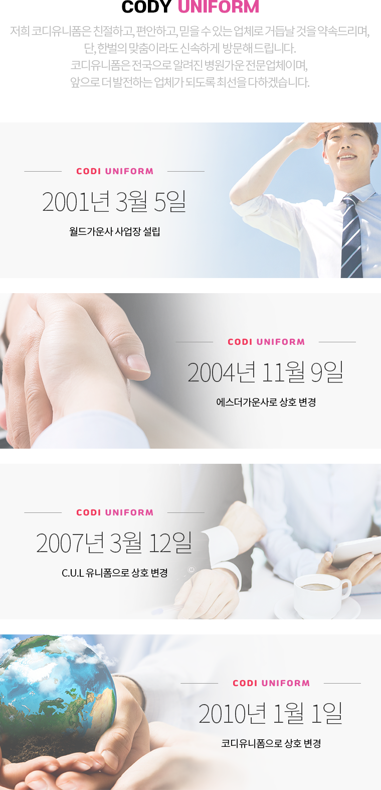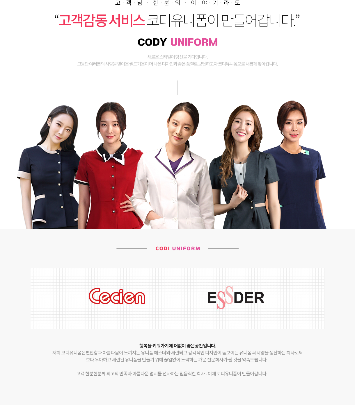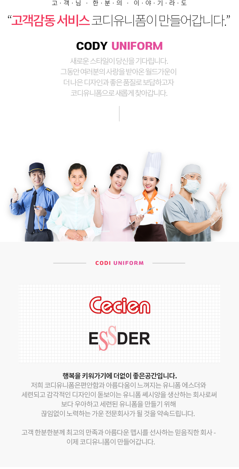 더 나은 디자인과 좋은 품질로 보답하는 코디유니폼입니다.