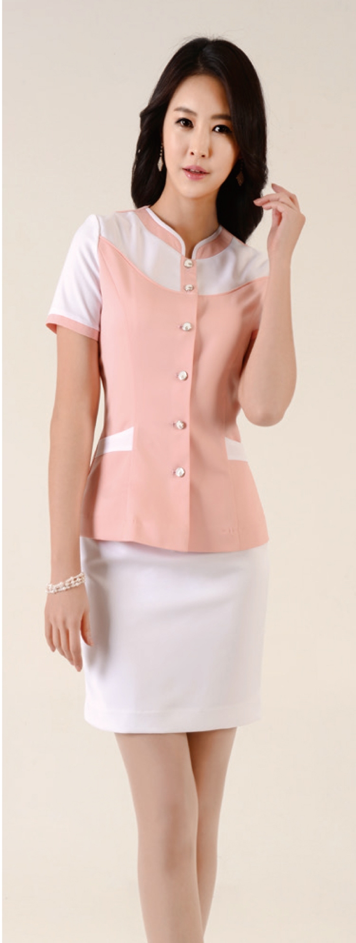 상의 : 연주황핑크 / 배색 : 백색 / 하의 : 백색