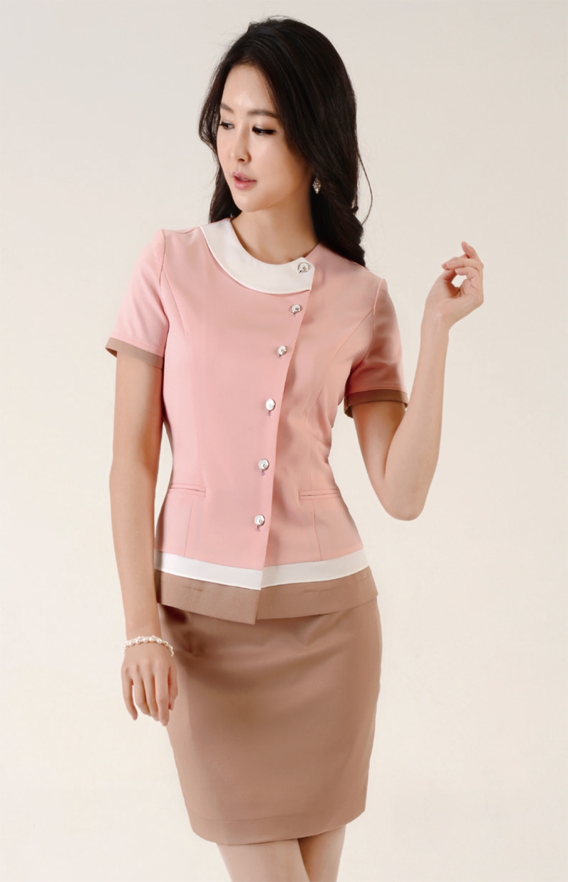 상의 : 살구빛핑크 / 배색 : 백아이보리, 진베이지 / 하의 : 진베이지