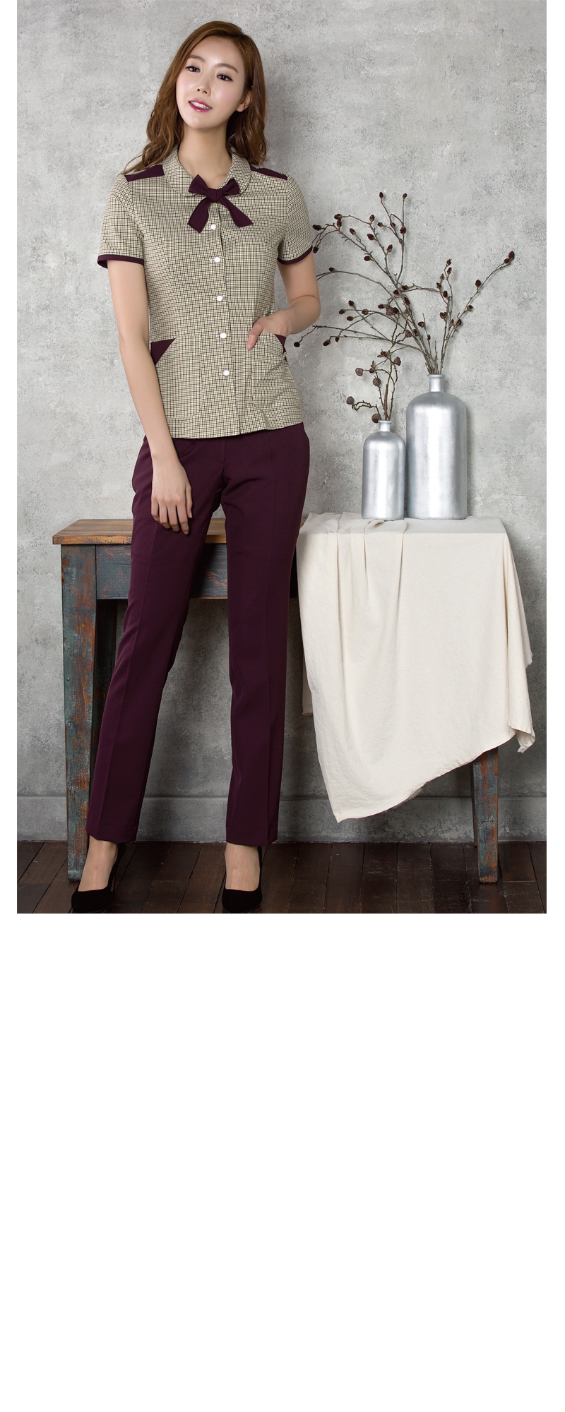 상의 : 그린+보라교차체크 / 배색 : 보라 / 하의 : 보라