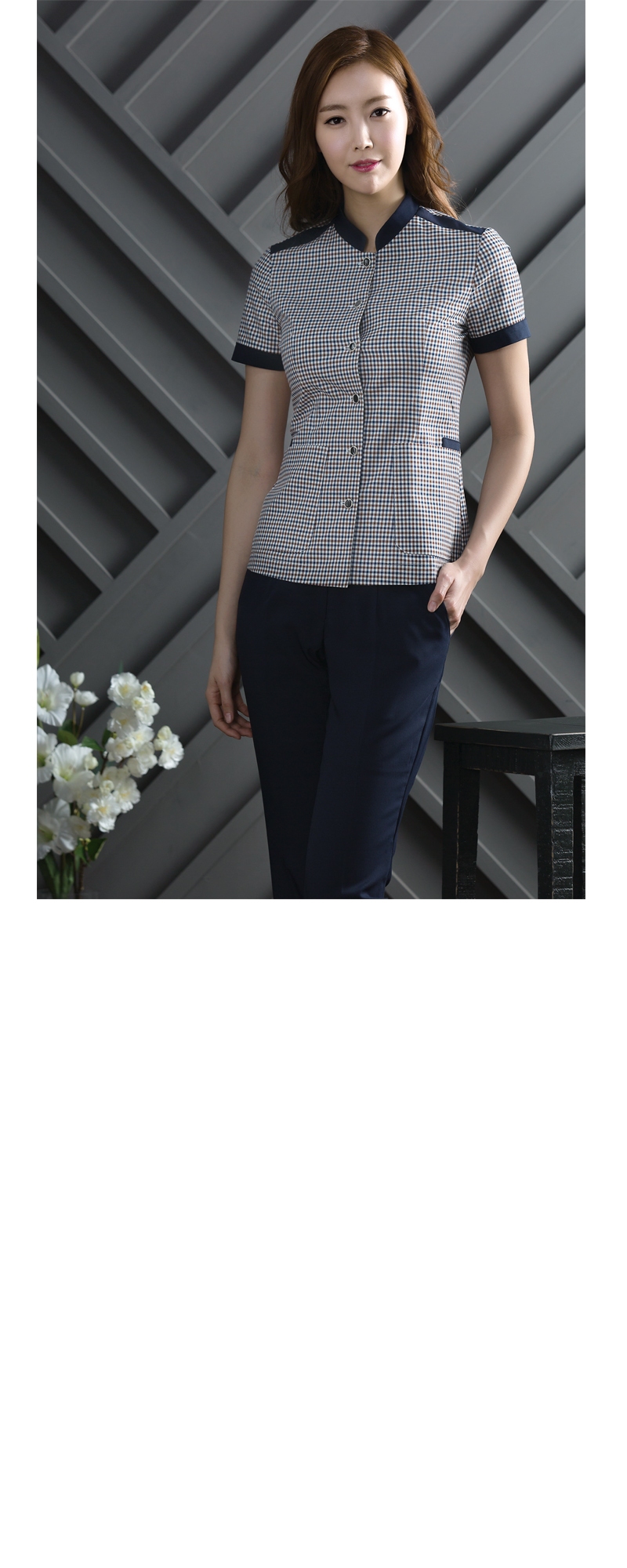 상의 : 네이비+갈색교차체크 / 배색 : 연네이비 / 하의 : 연네이비