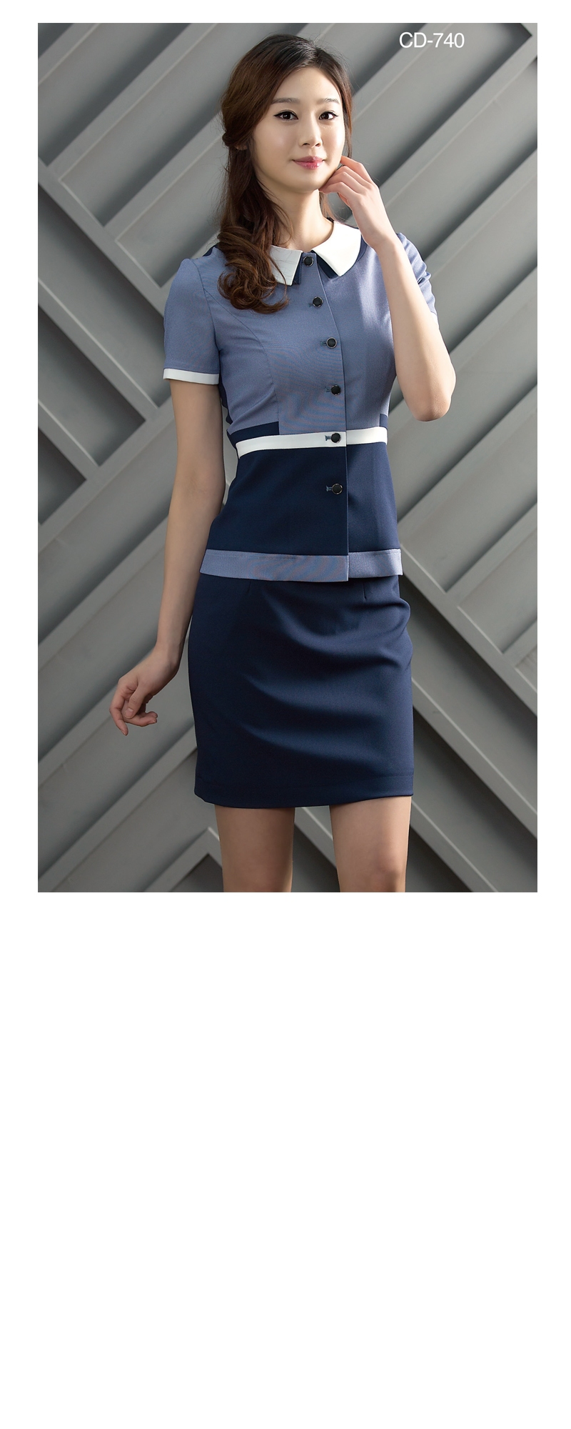 상의 : 연네이비 / 배색 : 백아이보리, 진소라계열 / 하의 : 연네이비