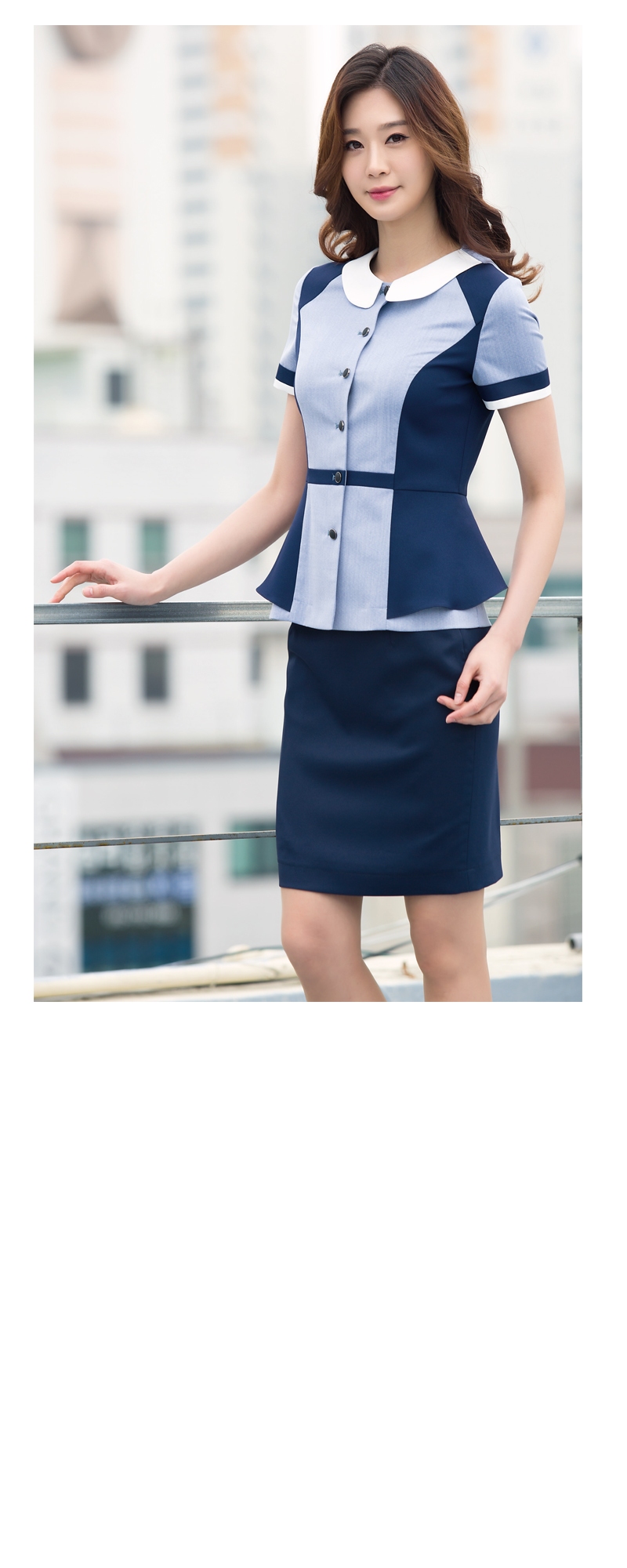 상의 : 소라계열 / 배색 : 백아이보리, 연네이비 / 하의 : 연네이비