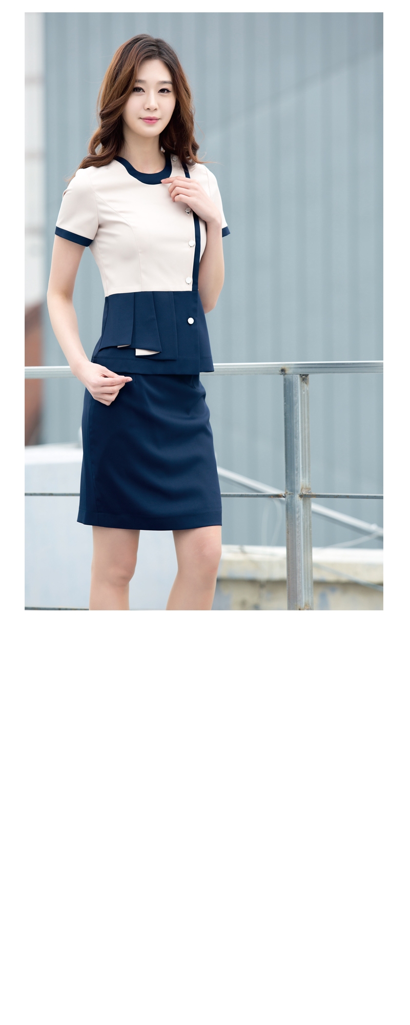 상의 : 베이지 / 배색 : 연네이비 / 하의 : 연네이비