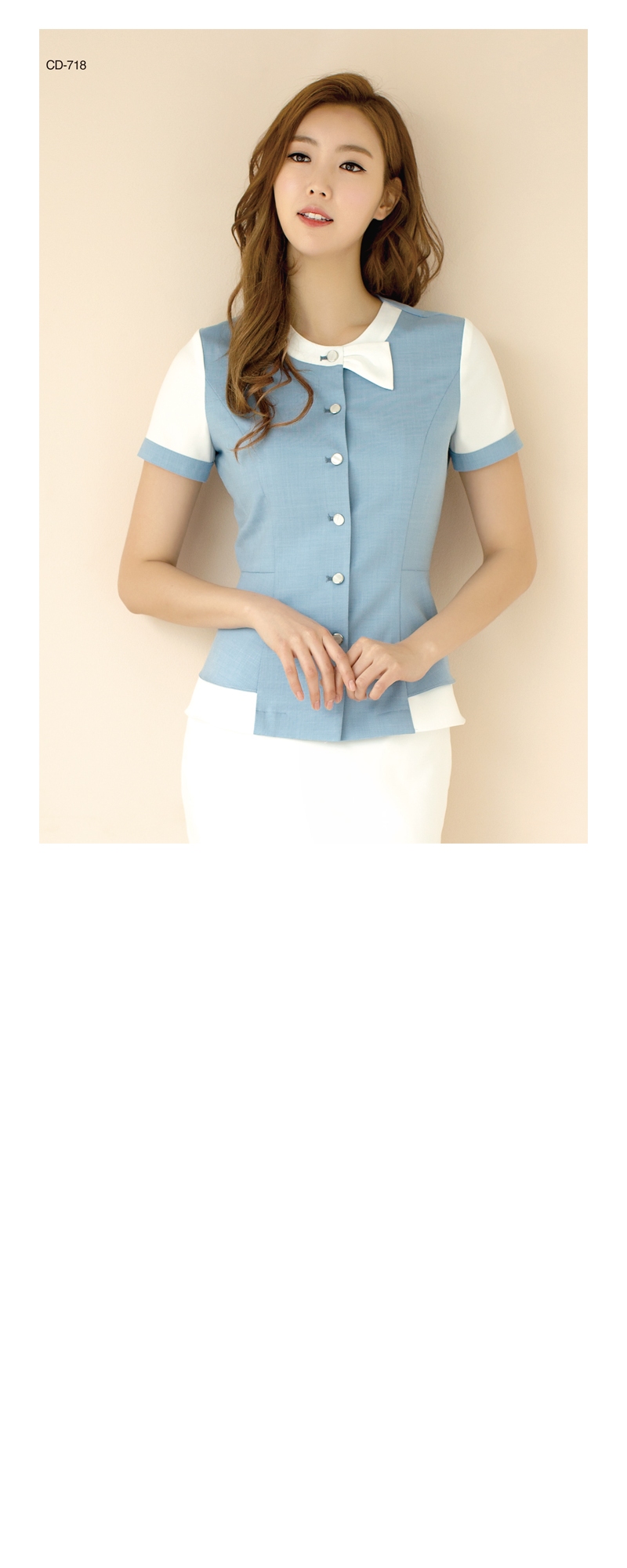 상의 : 밀키블루 / 배색 : 백아이보리 / 하의 ; 백아이보리