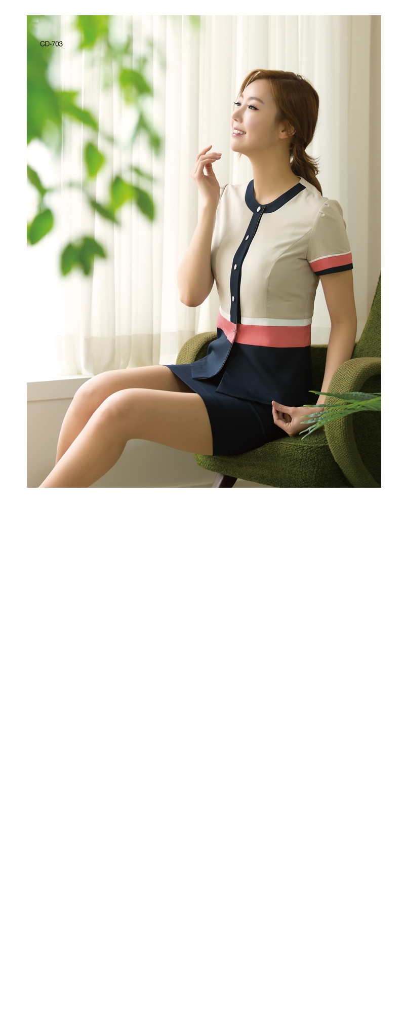 ▶상의 : 베이지 / 배색: 백아이보리, 진네이비, 다홍 / 하의: 진네이비