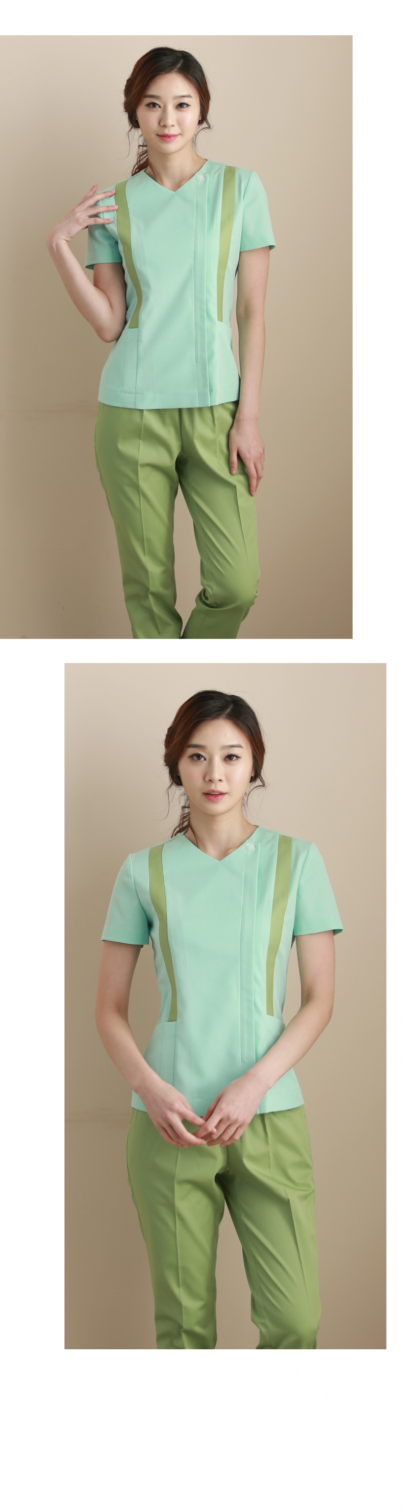 상의 : 연두 / 배색 : 풀색 / 하의 : 풀색