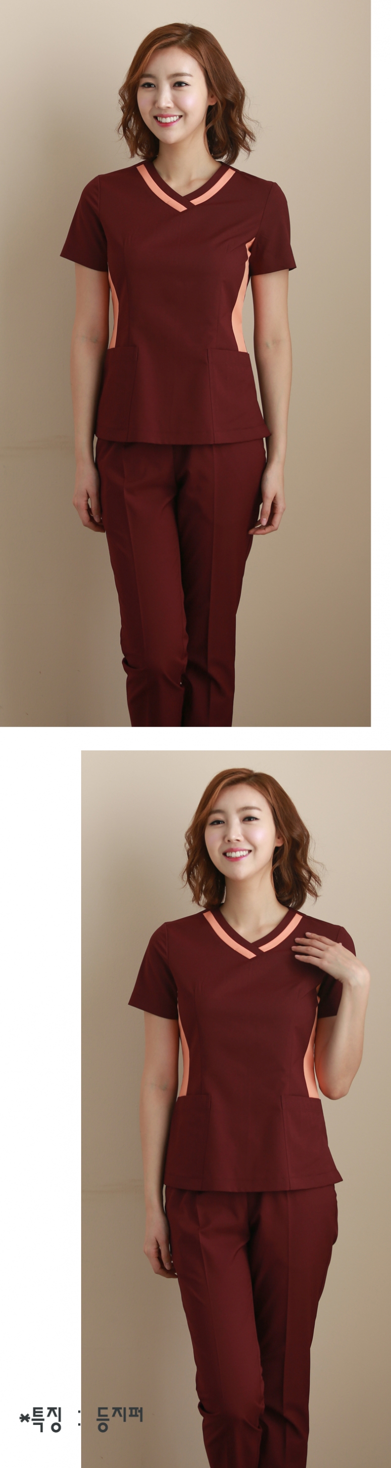 상의 : 진한팥죽색 / 배색 : 연주황