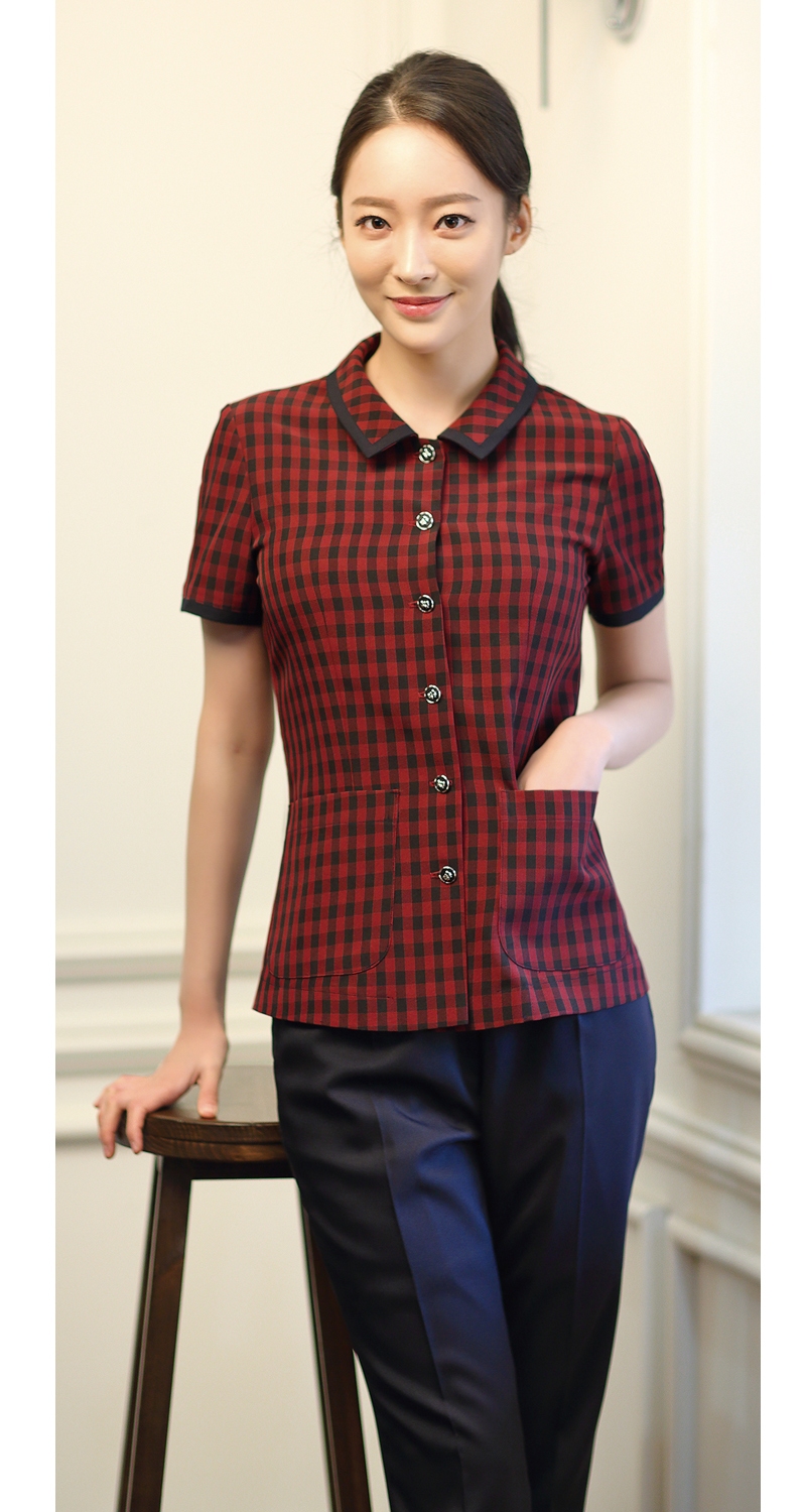 상의 : 레드+진네이비 체크 / 배색 : 진네이비 / 하의 : 진네이비