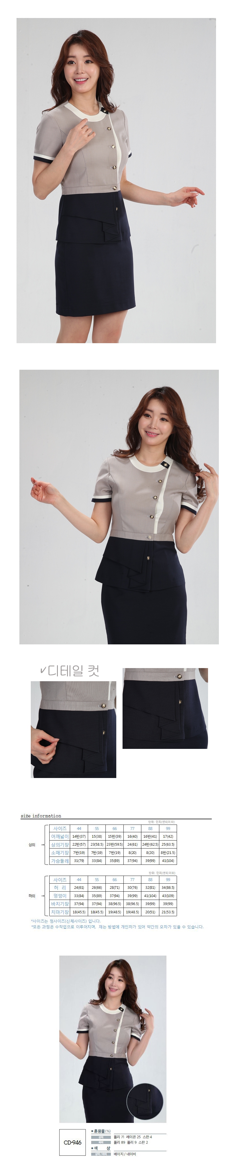 상의 : 짙은 베이지계열 / 배색 : 아이보리, 진네이비 / 하의 : 진네이비