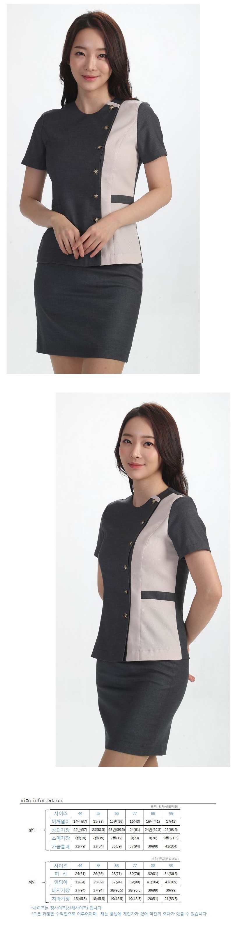▶바지 : 양옆 사이드 고무줄, 주머니 있음 / 치마 : 기본 뒷트임, 주머니 없음