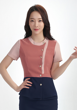 ▶상의색상 : 주황빛이 감도는 은은한 연갈색 / 배색 : 연네이비, 인디핑크빛의 베이지 / 하의색상 : 연네이비