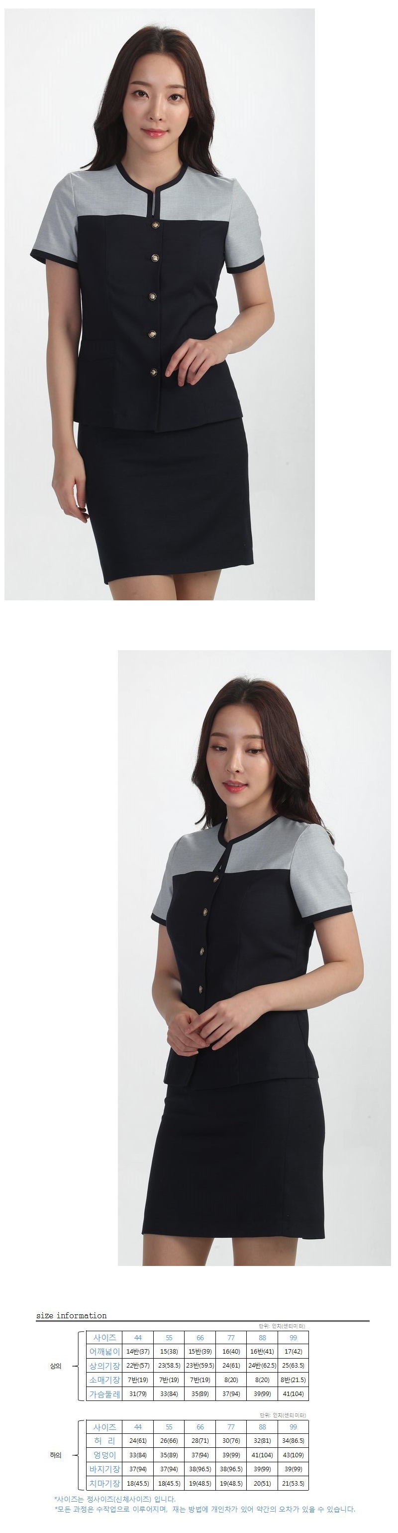 ▶바지 : 양옆 사이드 고무줄, 주머니 있음 / 치마 : 기본 뒷트임, 주머니 없음