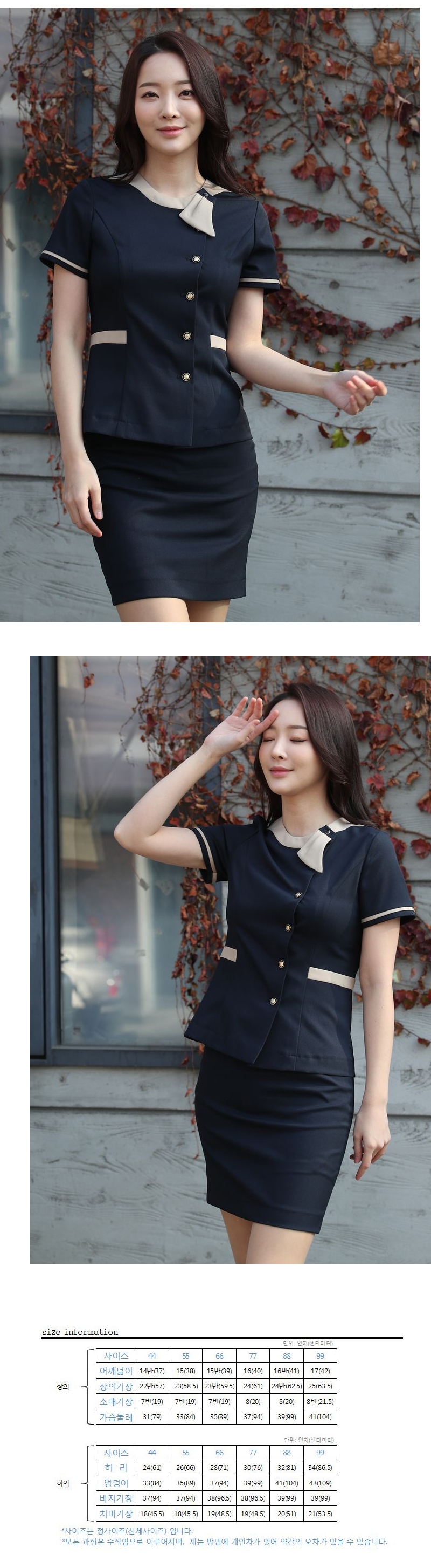 ▶바지 : 양옆 사이드 고무줄, 주머니 있음 / 치마 : 기본 뒷트임, 주머니 없음